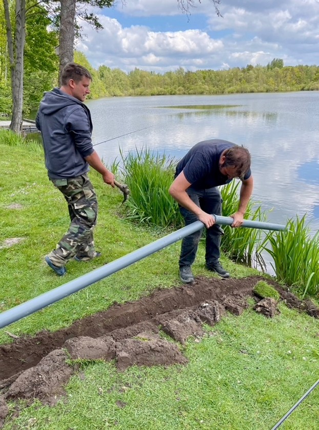 Wir haben angefangen zwischen See 1 & 2 (Dreieck) eine neuen Angelplatz zu erstellen. Die ersten 20 Tonnen Schotter sind eingebracht. Weite Arbeitsschritte erfolgen im Jahre 2026.